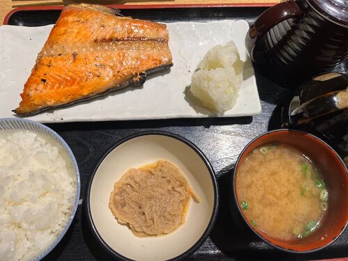 初北海道旅行の記録④ 開拓の村を後にし、札幌駅に戻り夕食。1日目に引き続きまた花まるさんの系列店に行きました。一夜干しと海鮮丼 できたて屋(JRタワーステラプレイス店)さんへ。注文したのはコチラ↓ 厚切り銀鮭(1,188円)と白米とあさり汁セット(396円)(20…